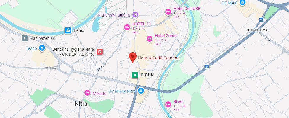 Nový, ultramoderný, štvorhviezdičkový hotel v Nitre sa nachádza priamo v centre mesta. Je situovaný v uličke na svahu pod Piaristickým kostolom, len niekoľko metrov od pešej zóny, na ktorej nájdete veľa butikov a kaviarní. Hoci sa hotel nachádza v centre mesta, jeho okolie nie je hlučné a preto vám v niektorej z priestranných a klimatizovaných izieb poskytne ubytovanie pre nerušený oddych.
